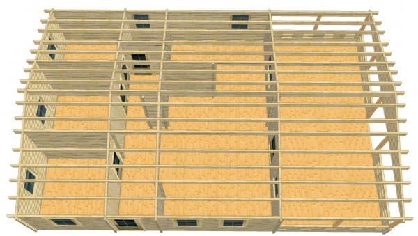 - Dach: 19mm starkers Massivholzdach mit Nut und Feder, glatt gehobelt.